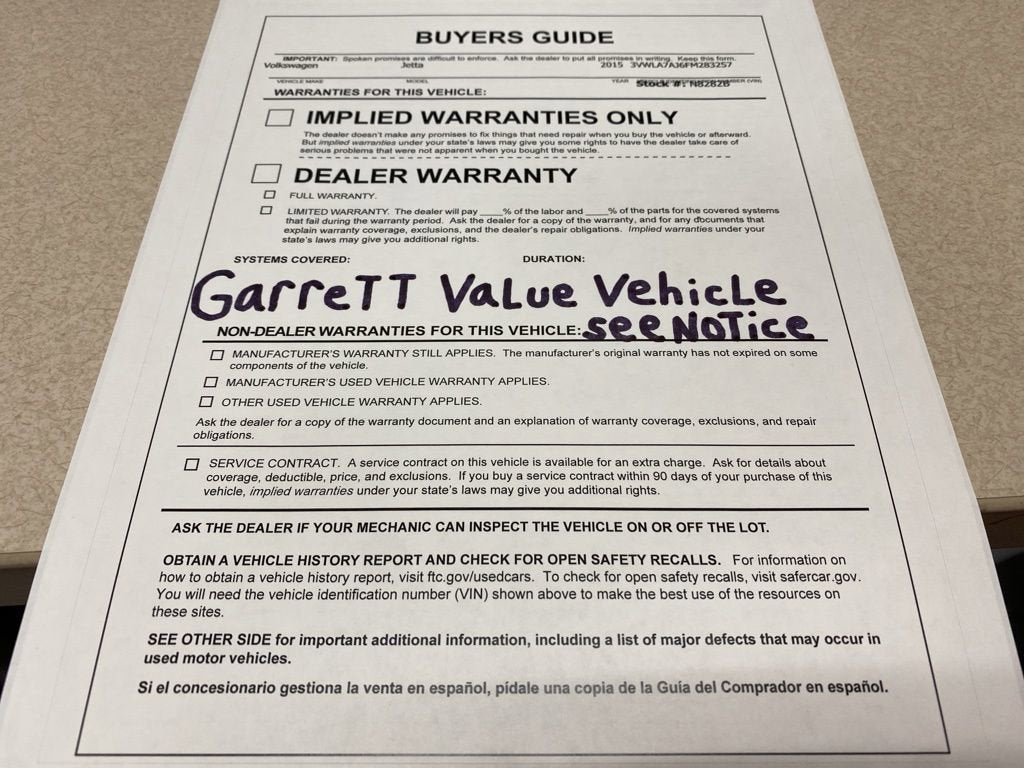 Dealer Installed Options included on most vehicles. They include Window Tint w/ Lifetime Warranty $699, door edge guard/cups $299, Multishield Interior/Exterior initial installation $399, Anti-Theft Etch $399. Some vehicles also have Paint Protection Film for $753. Some vehicles may include dealer installed aftermarket items not accounted for in the displayed online pricing." Accessories and color may vary. Quoted price subject to change without notice to correct errors or omissions. New vehicle pricing may already include applicable manufacturer incentives which may expire at any time and are subject to incentive qualification criteria and requirements, and which may be contingent upon manufacturer finance company approval. Manufacturer incentive data and vehicle features is provided by third parties and believed to be accurate as of the time of publication. Please contact the store by email or phone for details and availability of incentives. Sales tax or other taxes, tag, title, registration fees, government fees, and $499 dealer doc fee are not included in quoted price. All information is gathered from sources that are believed to be reliable, but no assurance can be given that this information is complete and neither Garrett Motors, Inc. nor its suppliers assume any responsibility for errors or omissions or warrant the accuracy of this information. Displayed MPG is based on applicable EPA mileage ratings. Use for comparison purposes only. Your actual mileage will vary, depending on how you drive and maintain your vehicle, driving conditions, battery pack age/condition (hybrid models only) and other factors.